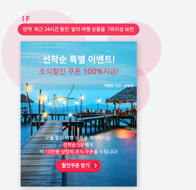 IFDO는 타겟 고객에게만 고객 상황에 맞는 메시지를 다양한 방식으로 제시할 수 있습니다.