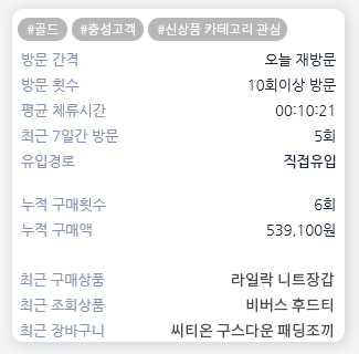 최근 방문, 행동 데이터, 태그정보 및