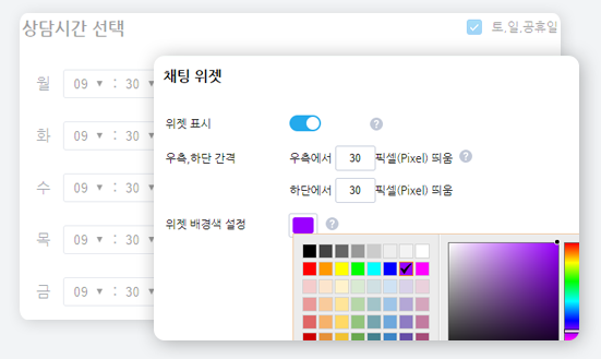 상담 위젯을 보이기/숨기기 할 수 있습니다.