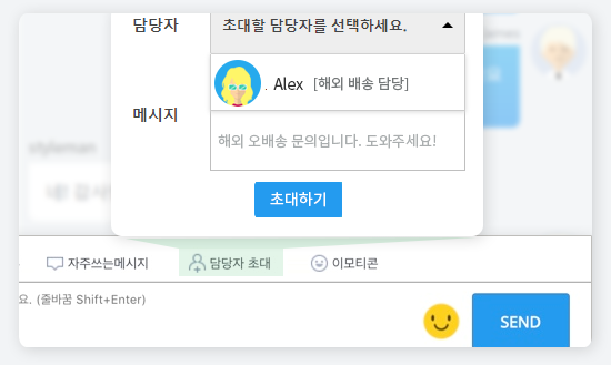 상담중 다른 담당자 초대, 파일 첨부,