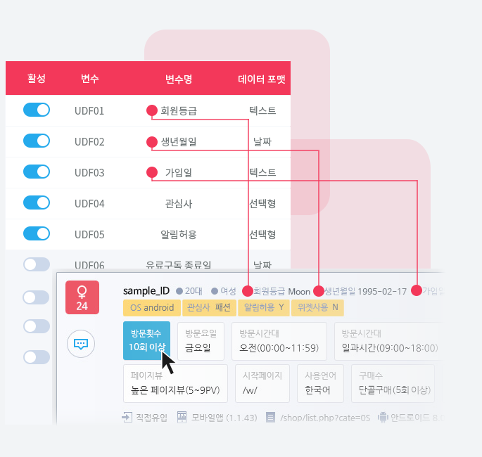 회원 데이터와 로그분석 데이터를 3차원으로 분석할 수 있습니다.